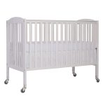 Dream On Me, Folding Full Size Crib 673, is the only 2 position folding crib available making it a must have piece of furniture for any growing family.  When your child outgrows the crib simply fold flat using the patented folding system and store.  No disassembly involved, now that’s convenience!  This crib is ready to use again by simply unfolding and locking into place making it perfect for guests with babies, grandparents and daycares. The stationary rail design (non drop side), dual safety hooded locking wheels and a beautiful  finish ensure safe use now and in the future.