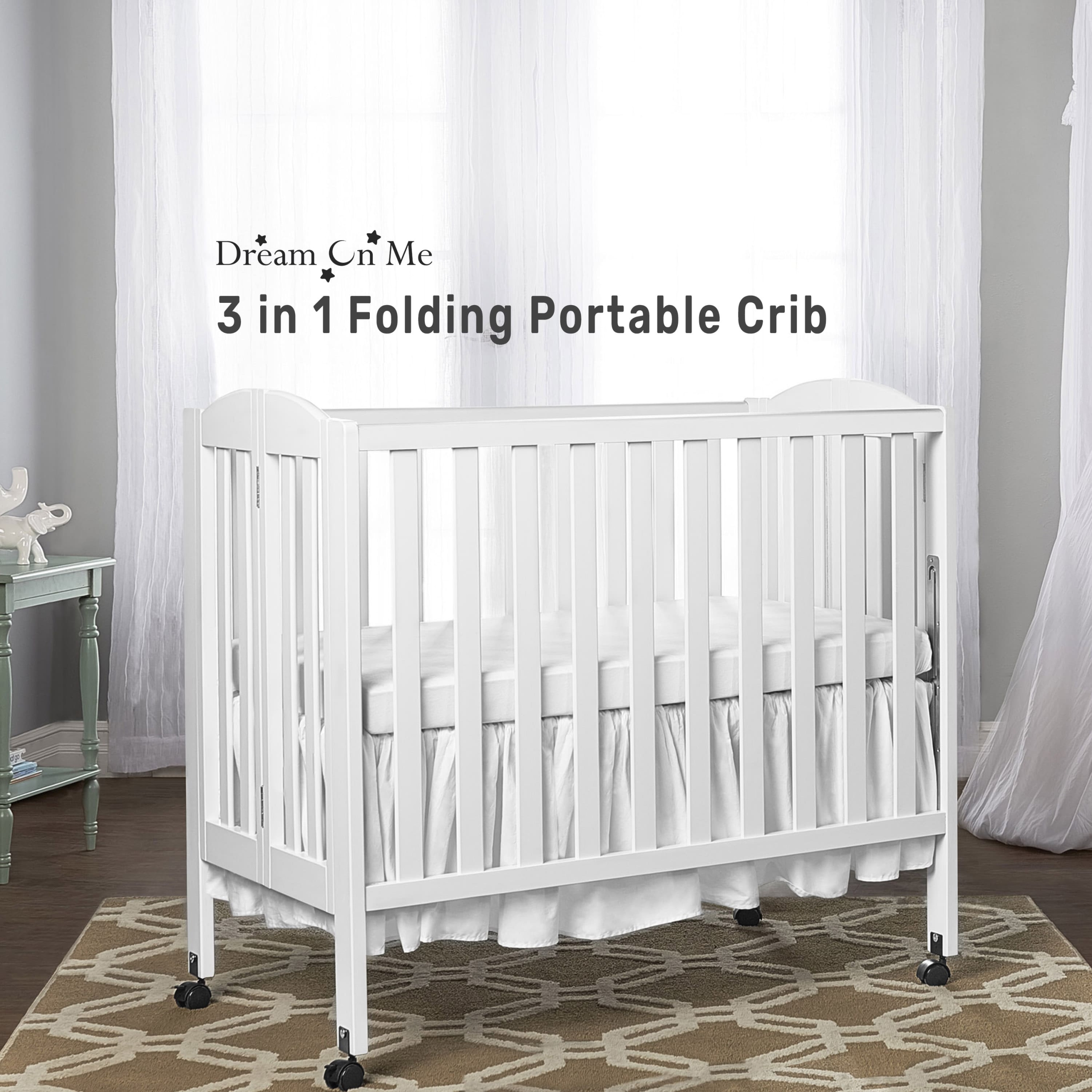 Dream On Me 3 in 1 mini Folding Crib,white