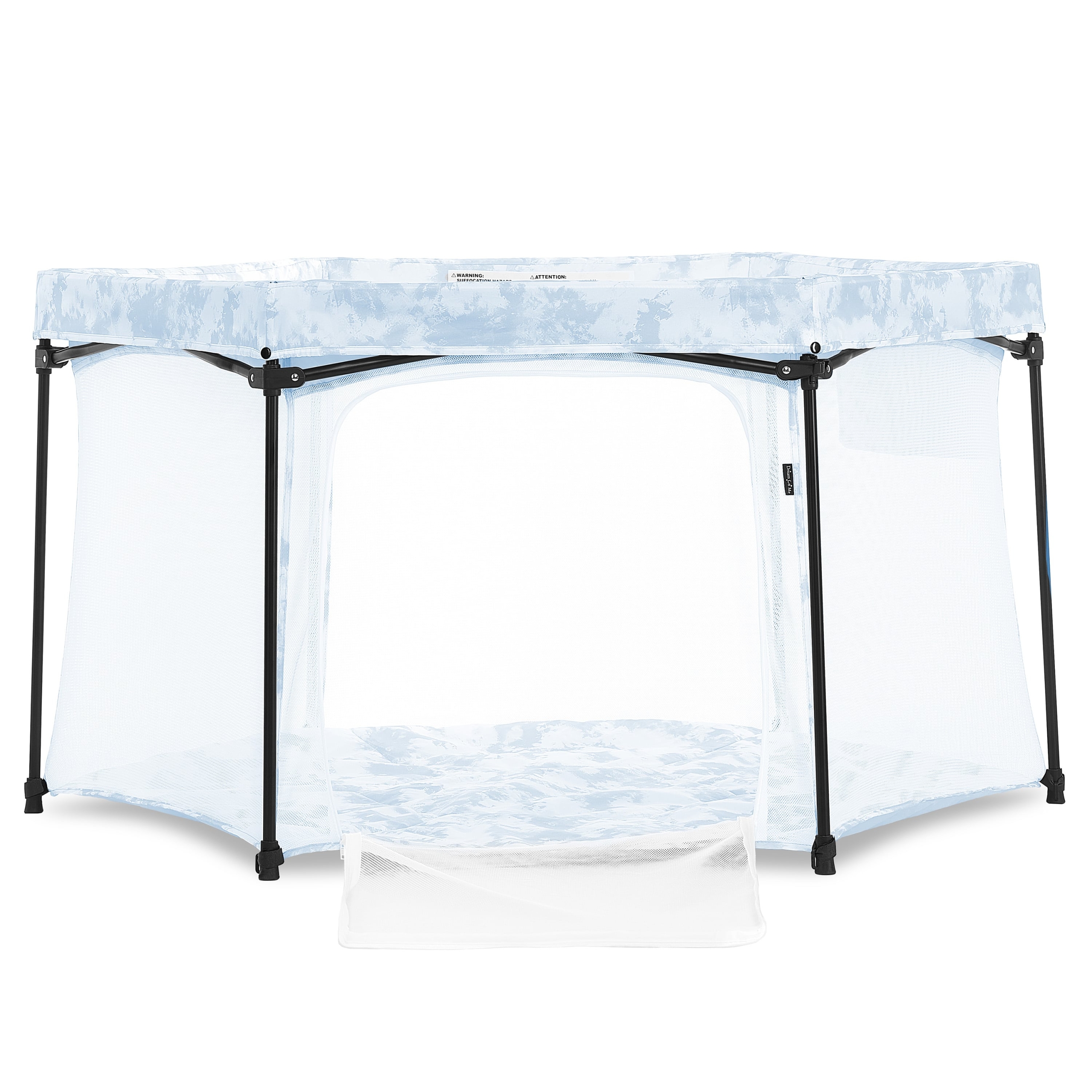 Children have a full time occupation and it’s called Play! Let them be occupied by it as much as you can with Dream On Me Onyx play pen! When using the Onyx, play or story time can be always fun and exciting. Let your little one hop in this ultra-light and portable play pen which can be setup and taken down in seconds, making it perfect for use at home or on the go. The Onyx is manufactured with high quality material and built to last for years to have your child enjoy their very own club house. The hexagon shape is spacious and wouldn’t tip over or collapse. Easy to clean when baby makes a mess in the playpen, just mop it with damp cloth. The carrying bag with strap makes it perfect for on taking it to the park or beach. Designed also to allow your baby to enjoy fresh air and sunshine anywhere anytime! Onyx can be used with included canopy which helps protect baby from the sun’s harmful UVA and UVB rays. It’s half mesh and half fabric design can be helpful as sunshade and visibility. Included Onyx canopy attaches easily to your Onyx Portable Play pen as needed. When not in use, it folds compactly to easily fit inside your playpen storage bag.