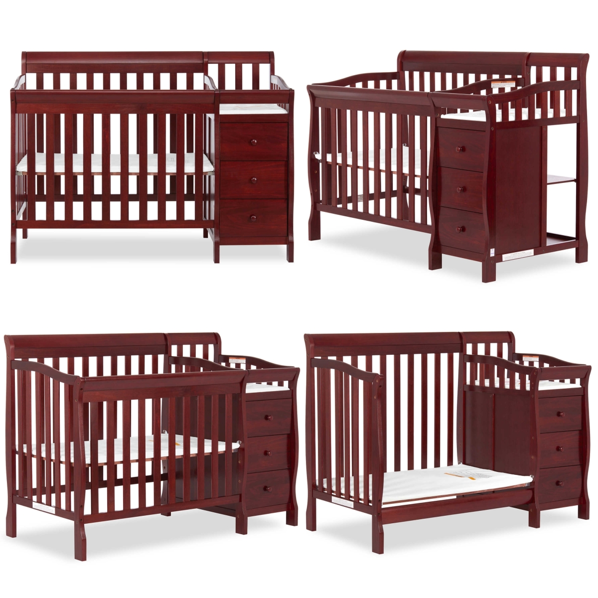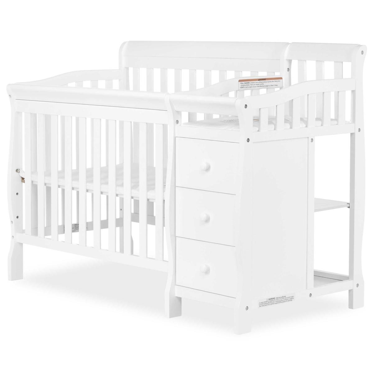 The Jayden 4 in 1 from Dream on Me is a beautifully constructed, rugged, multipurpose portable crib and changer. Comes standard with non dropsied rail system for safety, two level mattress support, 1″ mattress pad and attached changing table with 3 large storage drawers. The changing table is equipped with a changing pad and restraining strap with easy release buckle to secure baby safely in place. It is the perfect alternative for small spaces without giving up fashion, function or safety. Once your child has outgrown the crib, the changing table is detachable and this portable crib can be converted to a twin bed with optional bedrails (sold separately). Accommodates a Dream On Me 3″ portable crib mattress (sold separately). Do not use power tools to assemble this product which can cause the wood to splinter. Tools required for assembly are included with the item. Product dimensions are 56.75 L x 29 W x 41 H inches. Max weight limit 50 lbs.