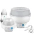 • Compact design: One clever device that works as an electric steriliser, microwave steriliser, cold water steriliser, bottle and food warmer, and breast milk defroster