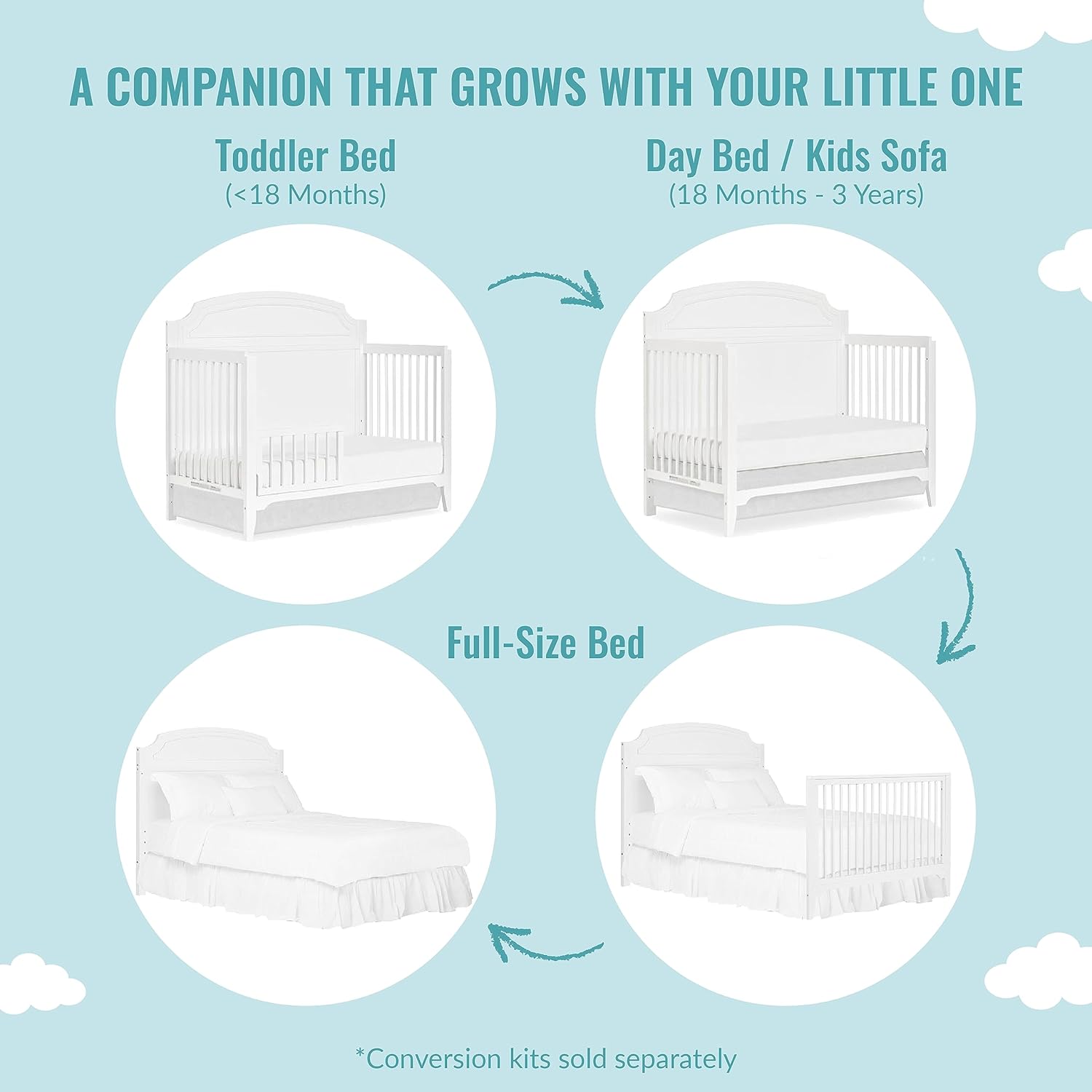 Crib that’s meant for every special stage in your child’s life! Introducing the Milton 5-in-1 Convertible Crib – where ultra-modern aesthetic meets wholesome classic design. Crafted to be your little one’s companion for life, this crib seamlessly converts to a toddler bed, day bed & full-size bed (conversion kit sold separately). Not only is the crib JPMA & Greenguard Gold certified, but it also meets/exceeds the ASTM & CPSC standards, providing utmost safety for your baby. The Milton 5-in-1 Convertible Crib is built of sustainable New Zealand Pinewood and sturdy wooden spindles, with a child-safe, non-toxic finish. What’s more, this convenient crib is easy to spot or wipe clean and comes in 3 alluring finishes that complement your nursery – White & Natural, Pebble Grey and White. Product dimensions are 54.5” L X 29.5” W X 48” H, with a weight of 55 Lb
