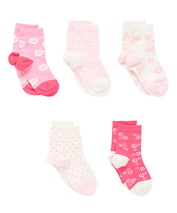This pack of socks includes five pairs featuring lovely designs one a flo Made from soft cotton and perfect for keeping little feet warm and cosy