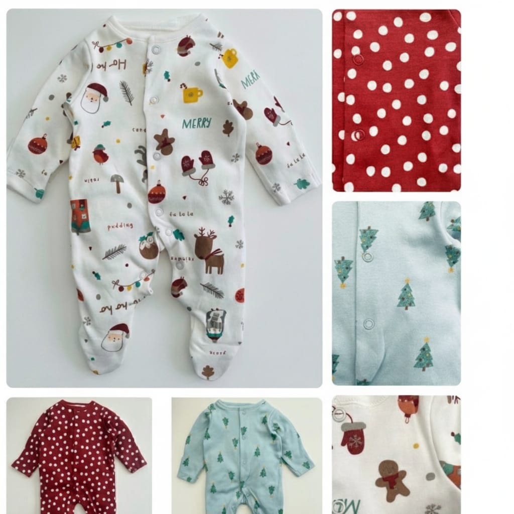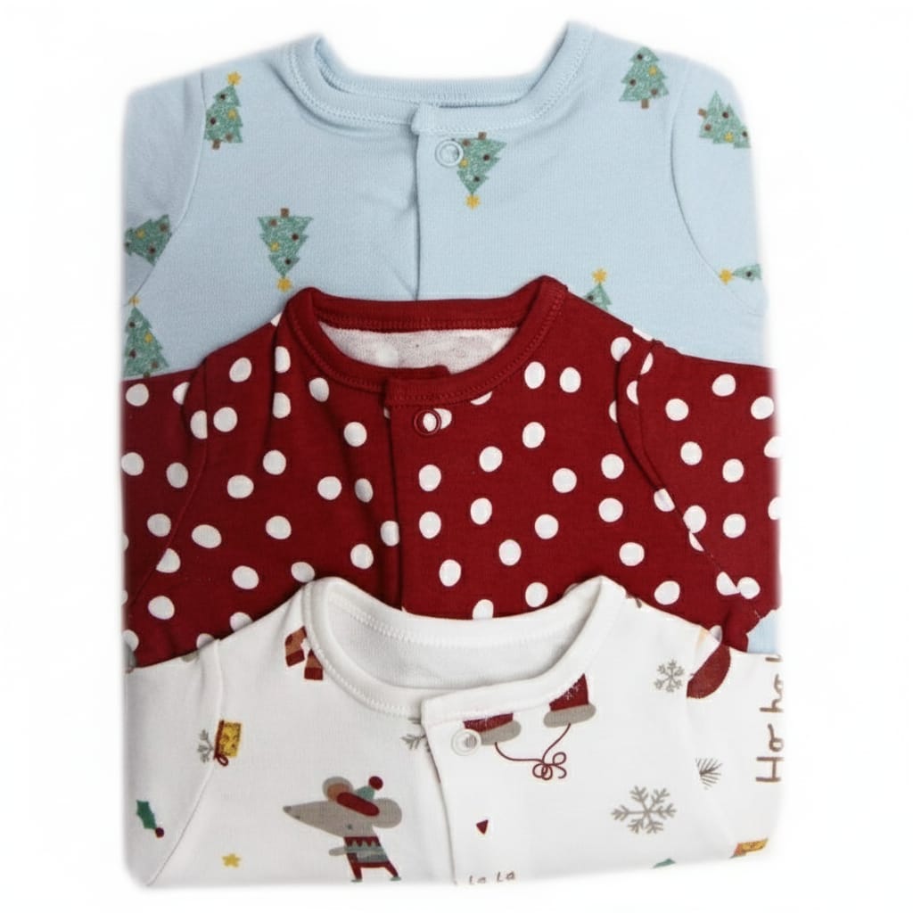 Baby Cotton Christmas Sleepsuits in a pack of 3.