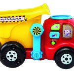 Learning is tons of fun with the Drop and Go Dump Truck by VTech. Drop a colorful rock into the top of this cute toy dump truck, and watch it tumble into the bucket. Your little one will learn numbers as the interactive truck counts each rock. Once the rocks are in the bucket, push or pull the truck along to see the rocks rumble inside. Then, lift the hinged bucket to unload the rocks and start again while developing motor skills. The dump truck also includes 3 colorful buttons that play melodies, phrases and teach tools and colors. Requires 2 AAA batteries (batteries included for demo purposes only; new batteries recommended for regular use). Intended for ages 6 months to 3 years.